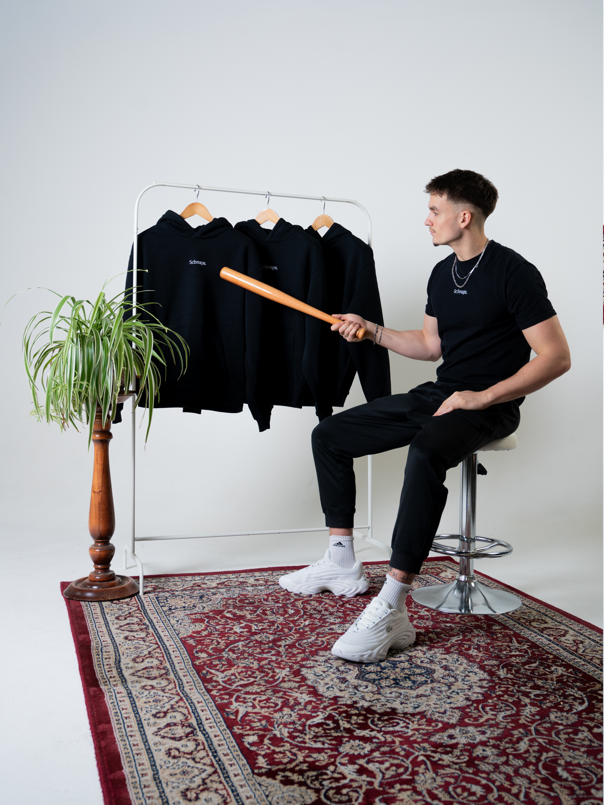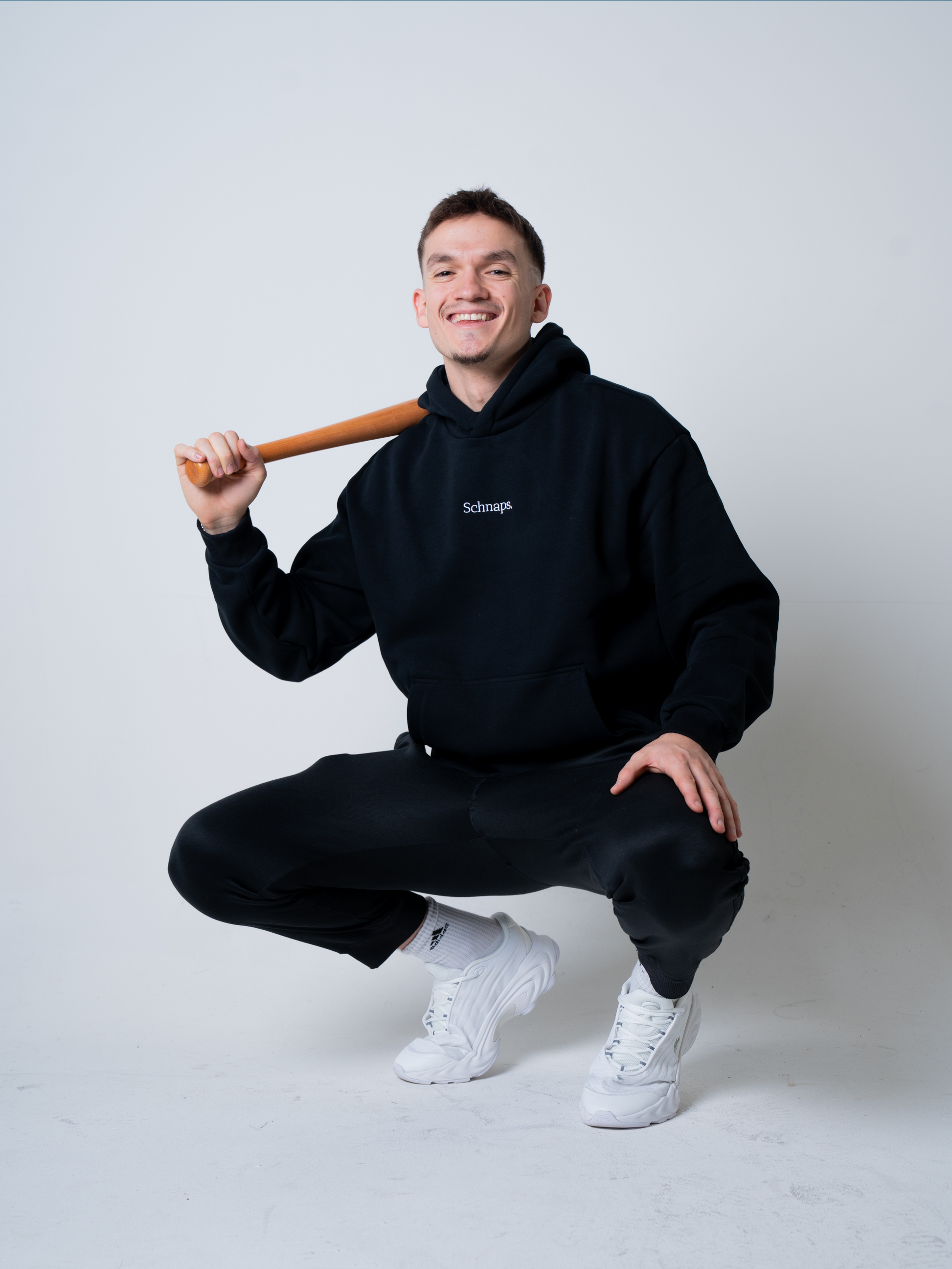 Der SCHNAPS Hoodie steht für kompromisslose Schlichtheit und maximale Qualität. Tiefschwarz, zeitlos und reduziert auf das Wesentliche – mit dem hochwertig eingestickten SCHNAPS-Logo als klarem Fokus.